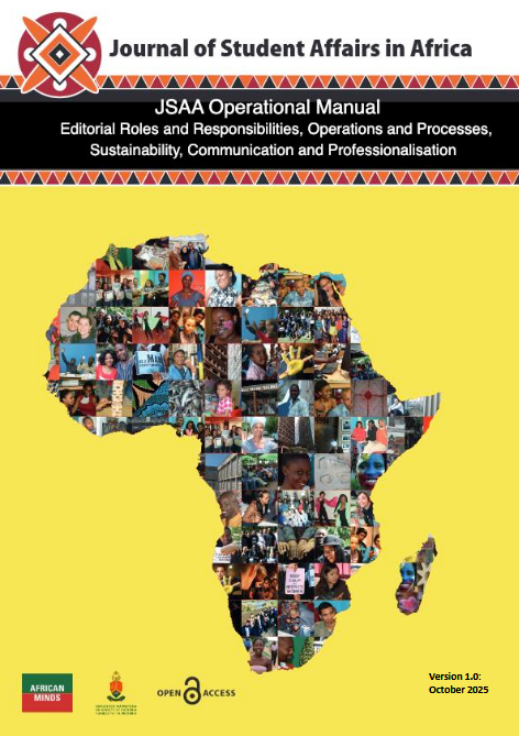 The Journal of Student Affairs in Africa (JSAA), a Diamond access journal, is the leading scholarly and professional platform for student affairs in African higher education. It amplifies diverse African voices, bridges theory and practice and contributes to the enhancement of student growth, wellbeing and success across the continent. The scope of the Journal is broadly defined as the staff and student experience of higher education in Africa with a specific focus on the professional practice of student affairs and research relevant to the African higher education context that may also have global impact and resonance.