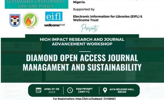 This is the second in a series of events organized within the project, ‘Expansion and Sustainability of Diamond Open Access for the Journal of Sustainable Development Law and Policy and Outreach to Journals in Southwest, Nigeria’, which is funded is through a three-year project to strengthen no-fee open access publishing in Africa implemented by EIFL, AJOL (African Journals Online) and WACREN (the West and Central African Research and Education Network), with funding from Wellcome.