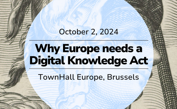 COMMUNIA, working with representatives of knowledge institutions and other experts, has identified six key problems faced by institutions and it has developed position papers with concrete asks on each issue: access to public sector documents and public speeches; access to publicly funded research and a unified research exception; a right to use cultural heritage in the Public Domain; an EU-wide right to e-lend; a limitation of liability for knowledge institutions; and measures to address refusals to license and unfair licensing practices. Now COMMUNIA wants to discuss the findings more broadly with stakeholders.